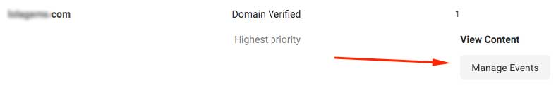 Click the domain and choose Manage Events.
